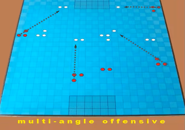 Coordinated multi - angle offensive is the most important feature of this game. It allows to create scoring opportunities from many angles simultaneously what makes for a dynamic and exciting play.