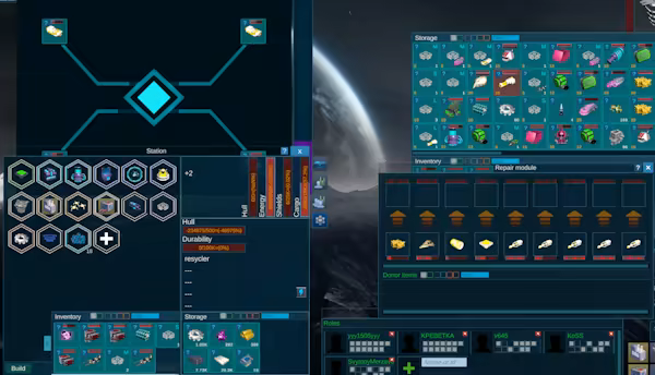 Spaceships are a platform for installing weapons, systems, devices, and drones. Ships are upgraded using collected resources, allowing you to choose your development style.