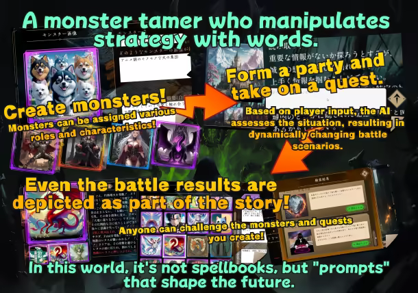 You take command as a Monster Tamer, issuing creative prompts to guide your monsters through the battlefield.