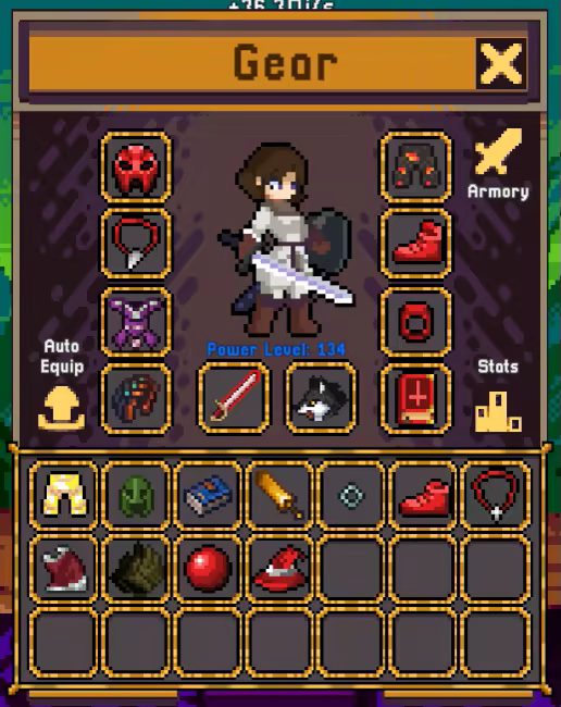 Then there's the Gear tab. Like in any other RPG, you will loot gear and equip it to benefit from its stats. Mostly addressed towards combat, but remember combat is your main Gold source.
