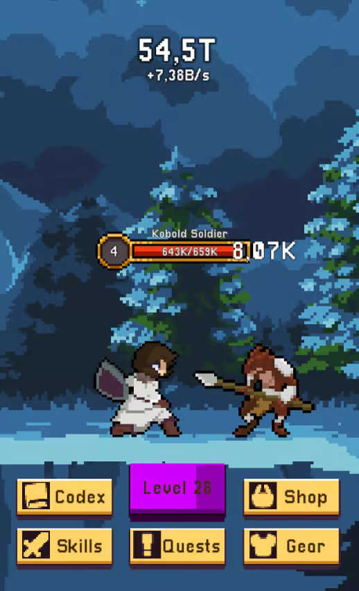 The basic mechanic isn't much different from any other incremental game - tap the screen, get resources. Use those resources to buy more resources that will exponentially generate more of that same resource, breaking the barrier of the thousands, millions, billions or quintillions.The way you get resources (in this case, Gold) is by killing monsters. You tap the screen, you land a hit. Enemies have HP, you deal damage. Enough hits, the enemy will die. Then there's a respawn time, which is affected by upgrades too.