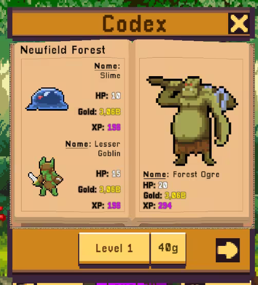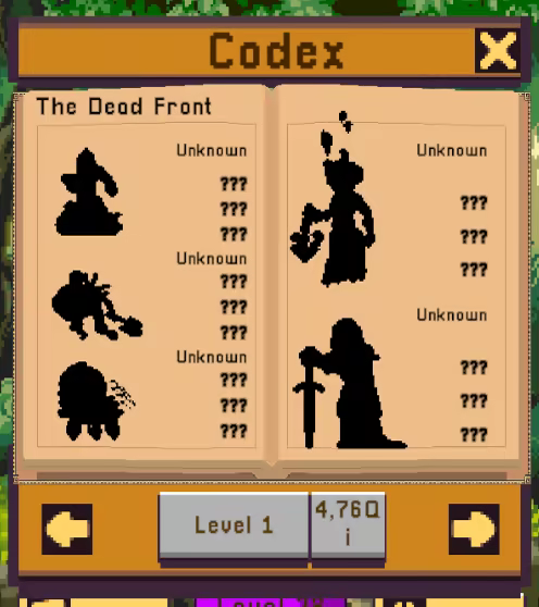 Codex. Here you'll gather information about all the enemies you come across. You can level those enemies up to make them drop more gold, XP and loot (but they'll also have more HP!).