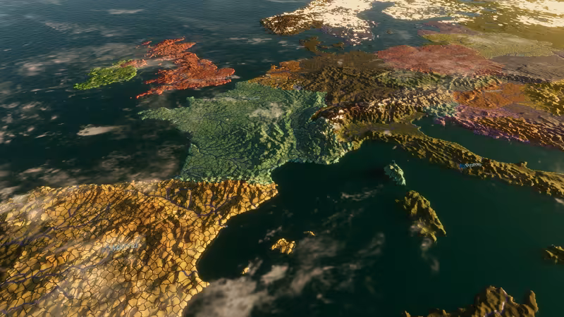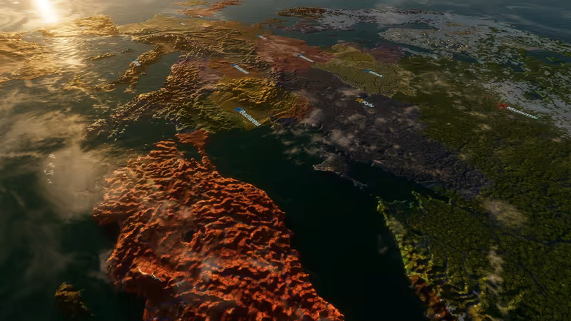 Geopolitical management game with real-time shifting borders and a streamlined gameplay, designed to minimize all burdensome chores while allowing an absolute strategic control, from military recruitment and deployment, to diplomatic and economic management.