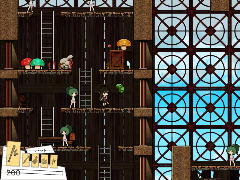 ``The Untitled Tower'' is an action game in which the main character struggles to save a princess who is imprisoned at the top of a tower by a demon.