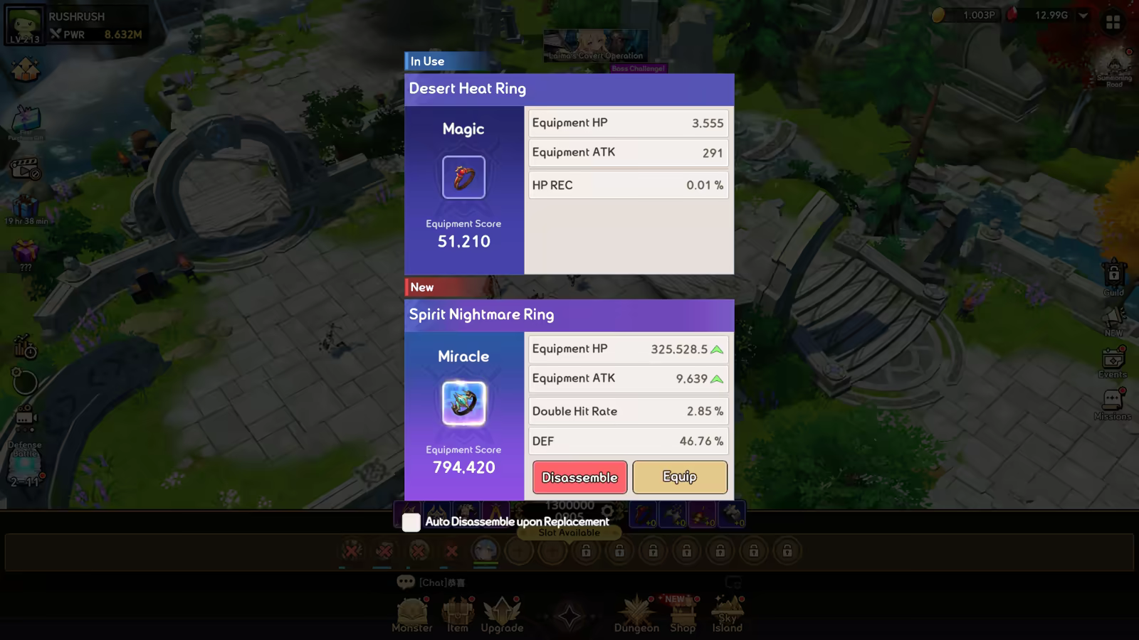 Use Magic Orbs to instantly acquire equipment. If a newly obtained piece is stronger than what's equipped, it will auto-replace to boost your power. Equipment is collected even during battle, making your progression both dynamic and satisfying.