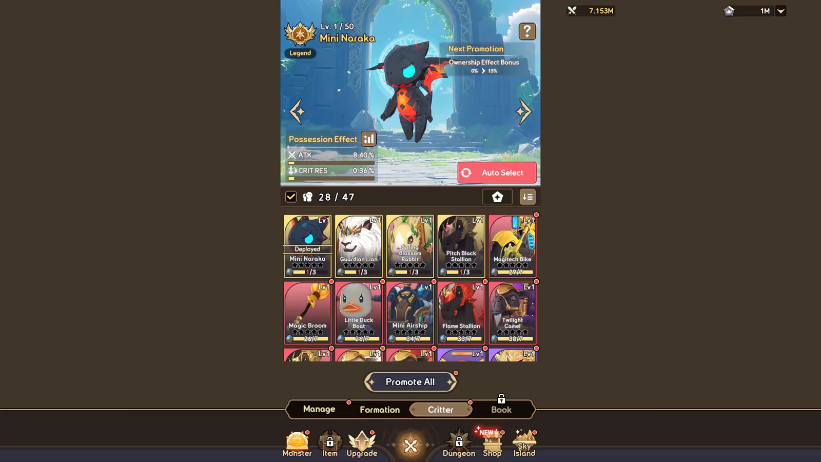 Collect Critters that boost your team’s overall stats just by owning them. Each Critter enhances a specific attribute, and their power increases with upgrades and level-ups.