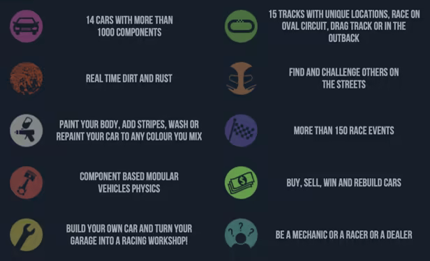 You have a friend Charlie, who is busy with building race cars. He would need some help from you and he invites you to Australia. You start your journey somewhere in a small town in Australia, where the only way to get recognised if you are able to build the fastest and best racing car around. You have Charlie, his expertise and his garage. The rest is up to you!