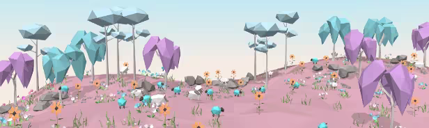 Equilinox also has a fully sandbox mode where you can place as many plants and animals as you like, plus you can genetically modify them to your heart's content! Create swarms of super fast pink wolves, high bouncing rainbow sheep, pixel art made from colored mushrooms, beautiful low-poly scenes, or anything else that you can think of. The possibilities are endless!